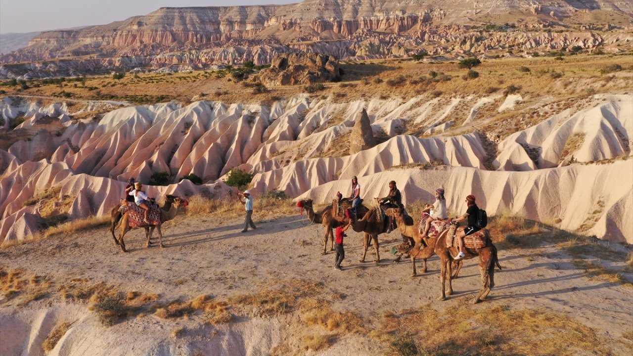 - Love Valley: We admire the towering, mushroom-shaped fairy chimneys. Riding a camel next to these giant pillars is a surreal experience.
