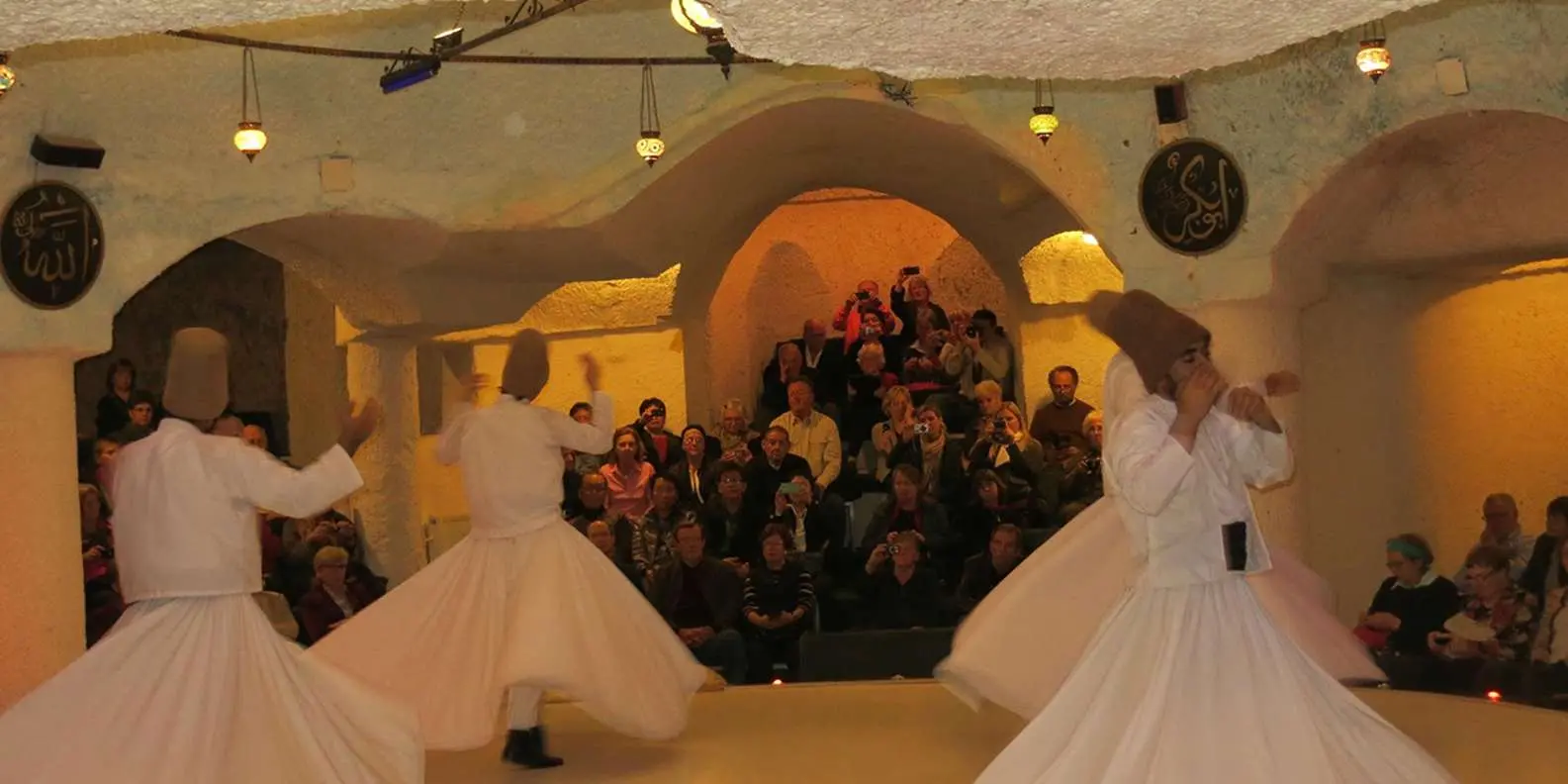 We pick you up from your hotel in Cappadocia (Goreme, Urgup, Avanos, Uchisar) and transfer you to the venue. The show usually takes place in a large, atmospheric cave restaurant carved into the rock.